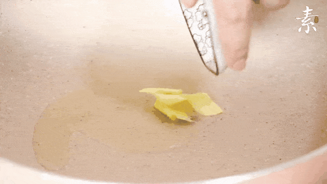 3.炒鍋熱油,放入薑片炒出香味。下入四季豆,香菇翻炒一下。
