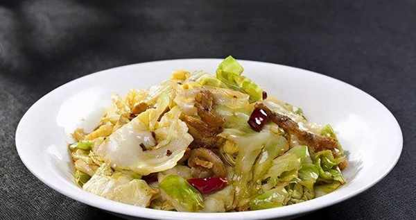 做法:先把卷心菜洗凈,手撕成片狀。然後把幹辣椒切成丁、蒜剁成沫,備用。鍋中放入適量食用油燒熱,下入蒜沫、幹辣椒和花椒,炒出香味。之後放入準備好的卷心菜,開大火迅速炒至卷心菜稍軟,加入生抽和適量鹽炒勻入味,熟瞭之後盛入盤中即可。