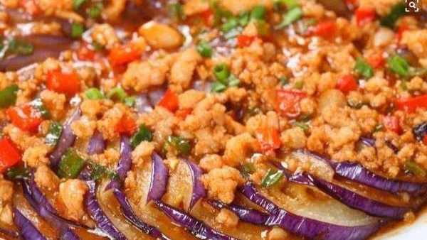 第一道菜肴是肉末茄子。