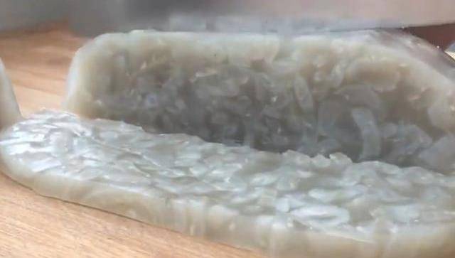 關小火熬一個小時,最後把蔥薑撈出來,放入食鹽,攪拌均勻就可以瞭。倒入盆中,放涼凝固就可以瞭,凝固後倒扣過來,水晶皮凍就做好瞭,特別的筋道Q彈。