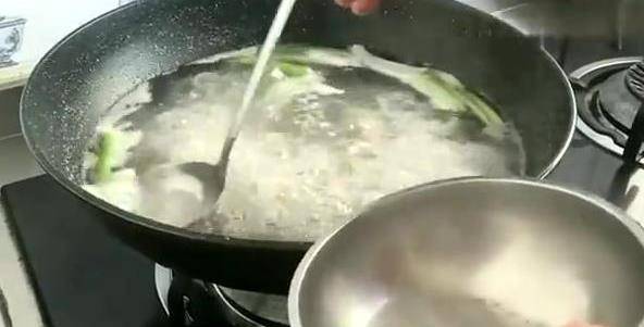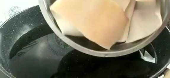 將豬皮處理幹凈後放入鍋中煮一下,放入蔥、薑、花椒、八角,再倒入料酒,大火煮開,煮開後再煮5分鐘就可以瞭,這樣去除表面的油脂就比較容易瞭。
