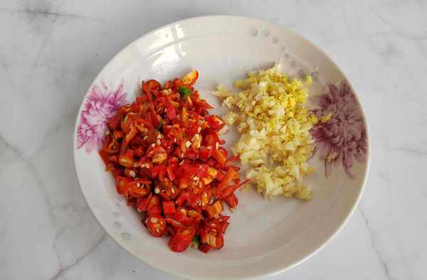 配料:紅辣椒10個;大蒜子半個;生薑1塊;花生油40克;鹽3克;生抽20克;蠔油10克;料酒40克;涼拌醋10克;白糖6克。