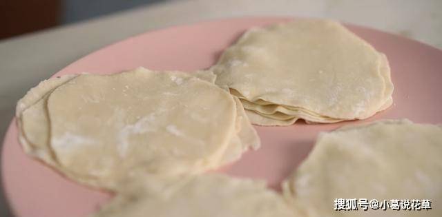 將面團搟成甜甜圈形狀。然後切成兩半,形成兩個等長的面團。取一塊面團,搟成直徑約2厘米,切成均勻的小塊,每塊搟成一個球。用搟面杖搟成薄面團。餃子皮可以卷得中間厚一點,兩邊薄一點。