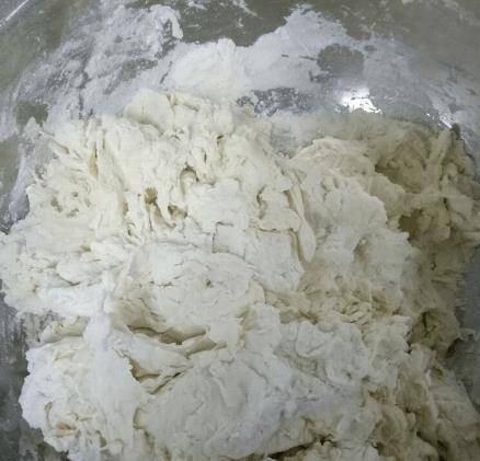 先在盆裡倒入適量的面粉,在碗裡倒入適量的溫水,水裡放少許白糖,用木棒攪拌至白糖融化,然後放酵母和‘白糖水’,待面粉完全融化後倒入面粉中攪拌,當面粉攪拌成絮凝劑時,揉成光滑的面團。面團不要太軟,註意不要讓面團粘手或粘鍋。