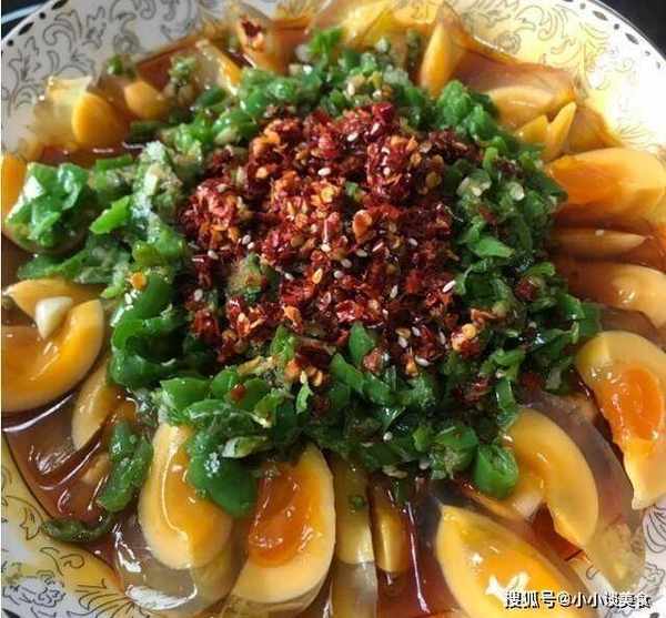 材料:雞蛋罐頭4個,小青椒數個,辣椒油,香油,花椒油,生抽;