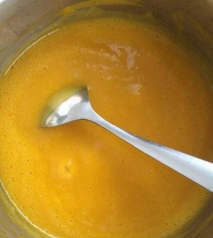 4.鍋裡加入砂糖和水,燒開,把南瓜糊倒進鍋裡,邊倒邊攪拌,直到和水完全混合,再煮10分鐘左右,看整體稠度,我喜歡吃稀一點的可以使用時加少許水,喜歡吃幹的就多煮一會!