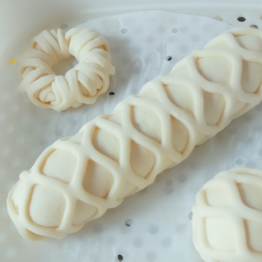 創意牛奶花樣饅頭是采用牛奶、酸奶和面蒸制而成,成品外觀潔白漂亮,口感柔軟、綿潤、香甜。