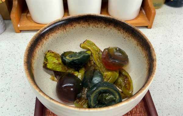 這道菜最大的缺點估計就是不好看瞭,灰綠相間的顏色,顏值基本為零,但真的耐不住它味道好,美味值能打滿分,皮蛋鮮美Q彈的口感,再加上清香爽辣的青椒,吃過一次就會念念不忘。