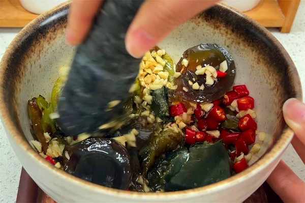 擂辣椒皮蛋,一道很經典的湘菜,在長沙的每傢湘菜館裡也都能見到它的身影,而且幾乎是桌桌必點,在湘菜中是絕對能排入前幾位的美味佳肴。