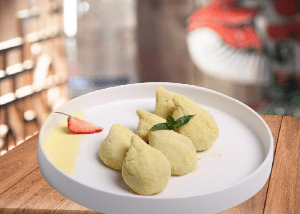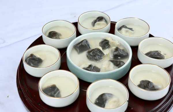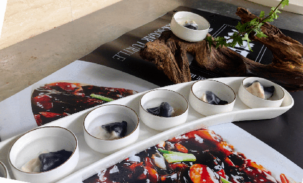 目魚、蝦、黃魚是寧波沿海著名的海鮮,深受江浙一帶人喜歡,當海鮮與豬肉餡結合在一起,油而不膩、鮮美多汁、芳香四溢,餃子皮薄略帶鮮味,餃子黑白雙色富有美感,多受食客歡迎。