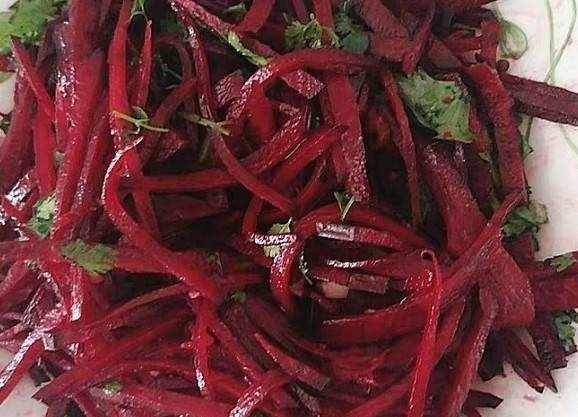 今天,你可以在五分鐘內完成一隻貪吃的小貓帶來的炒甜菜根的做法。首先準備甜菜2根,鹽適量,雞湯適量,大蒜適量,橄欖油適量。先將甜菜根用清水洗凈,瀝幹水分,切片後切成月形待用,大蒜去皮洗凈切粒備用。
