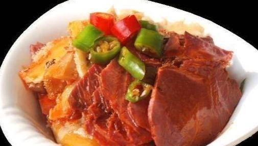1、將2500克牛肉切成500克左右的大塊,與2500克牛內臟(牛心、牛肚、牛舌)一起放入沸水中去血水。
