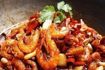 2、鍋燒熱,幹鍋熱油至50%,加入花椒、辣椒、幹鍋醬、薑片、蒜瓣,炒香後加入高湯翻炒。用蝦炒和調味,將蔬菜放在枕頭上。將紅蔥頭放入裝有辣椒的幹燥容器中,然後借助酒精爐點燃即可食用。