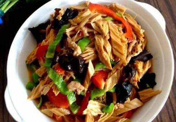 4.青椒香菇炒腐竹