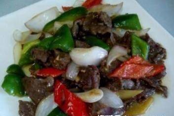 2.略微攪拌,呈淺灰色時取出瀝幹。鍋中倒入適量的油燒熱,放入洋蔥末炒香,再倒入切好的燈籠椒翻炒片刻,倒入豬肝。3、加入生抽、老抽、料酒、糖、鹽,稍微攪拌一下,最後加入少許水淀粉勾芡即可上桌。