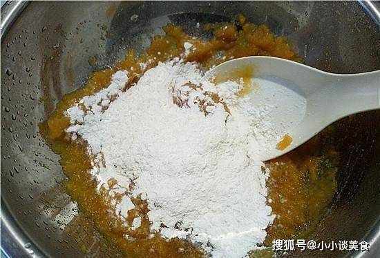 3、加入適量糯米粉,用鍋鏟攪拌均勻。如果還是很濕,一次加一點面粉。