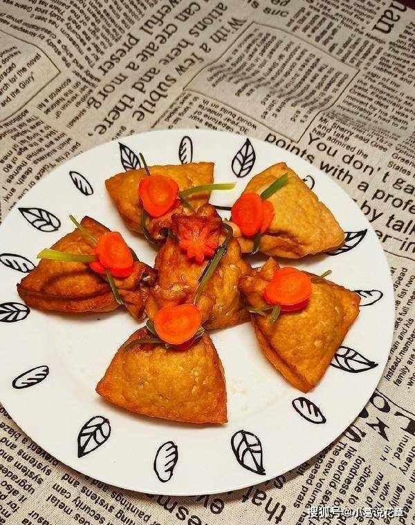 炸豆腐8片、筍絲豬肉餡適量、香菜8條、胡蘿卜適量