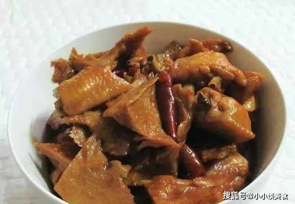 中翅燒烤麩材料:中翅305克、烤麩280克、幹辣椒適量、冰糖適量、料酒適量、醬油適量、蠔油適量、鹽適量。
