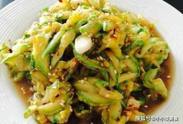 材料:西葫蘆300克;30克碎花生;幹辣椒4個;10粒花椒;1茶匙鹽;1湯匙油;1茶匙醋
