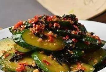 1、黃瓜兩根切成厚片,紫蘇適量,紫蘇葉切條,藥明、辣椒粉適量;