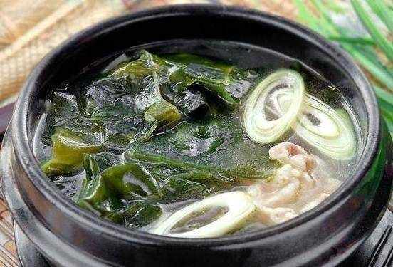 7、排骨湯中加入紫菜,小火煮20分鐘;