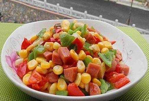 配料表:玉米粒、青椒、火腿、紅椒、油、鹽、蔥、薑、蒜、雞精、五香粉