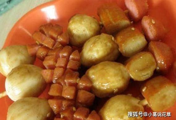 水煮鵪鶉蛋6個、烤腸2條、魚丸6個、蟹棒2根、竹簽6根、水適量、麻醬適量、醬油適量、鹽適量、鹽適量糖和適量的芝麻