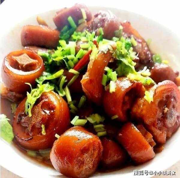 3.炒好上色後..放入薑絲..八角一粒,桂皮兩支..炒香..放白胡椒粉,生抽一湯匙,陳醋半湯匙,和一點糖。翻炒。。如果炒的糖色太嫩。如果這不起作用,請不要添加白糖。如果太甜,倒半碗啤酒下去。我倒進一個罐子裡……煮……加開水。水量以豬尾高一指為宜。
