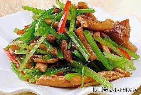 4.香菇出鍋後,沒有異味瞭,加入芹菜