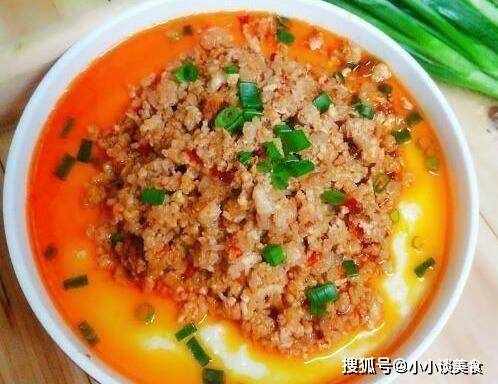 4、將肉末(或肉末)鋪在豆腐上面,撒上一層青紅辣椒粉(或花椒),淋上一層蒸魚醬油。