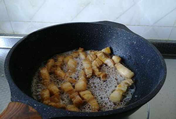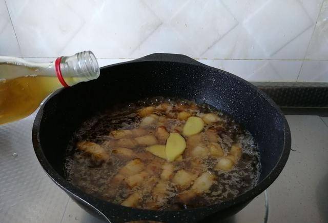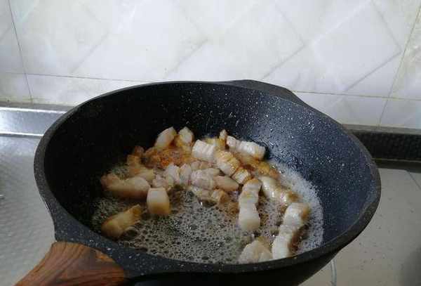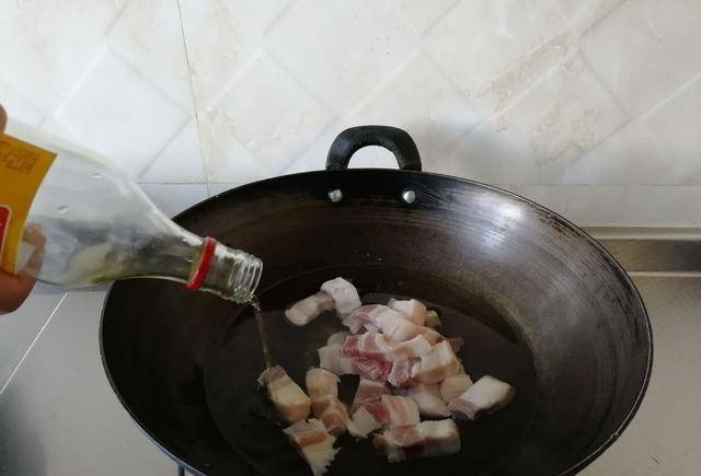 1、五花肉切小塊,洗凈後放入鍋中。加水,倒入料酒。在高溫下煮沸。