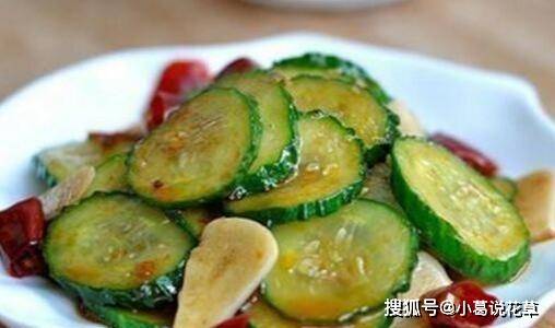 1、黃瓜洗凈,切成薄片用少許鹽醃20分鐘;將大蒜切成薄片;紅辣椒去籽,切成楔形待用;