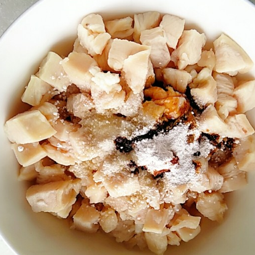 第5步、加淀粉和生抽,油,料酒。