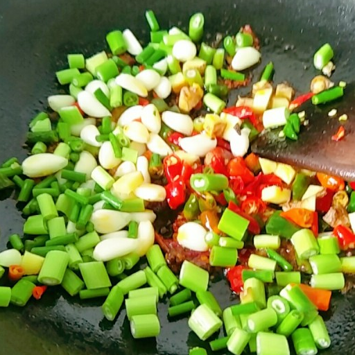 第15步、下配菜翻炒均勻出香味。
