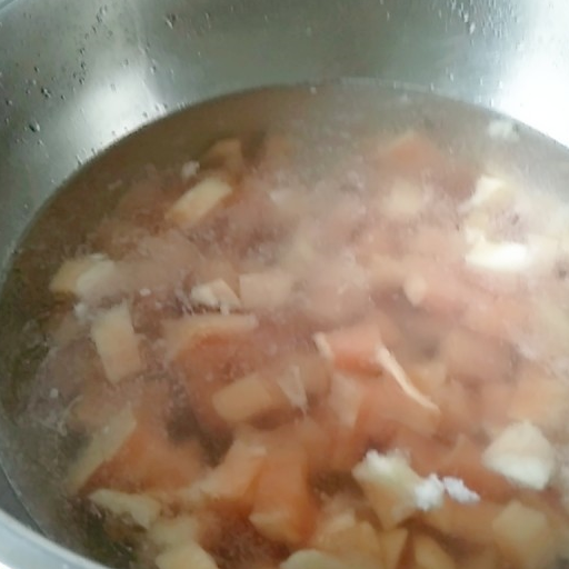 這個菜我沒有加鹽,因為有火鍋底料的加入,鹽已經很合適瞭。