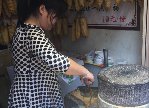 其大致的流程大概是這樣的:首先你得將糯米做成一種類似於油條的東西,隨後放在烤盤上待用,待客人來買的時候再將其取出放在一旁壓扁,隨後加入手工磨出來的粉,均勻撒上之後即可食用。因其香糯粘滑,常被用以制成風味小吃,深受大傢喜愛。逢年過節很多地方都有吃年糕的習俗。正月十五的元宵也是由糯米粉制成的。糯米富含B族維生素,能溫暖脾胃,補益中氣。對脾胃虛寒、食欲不佳、腹脹腹瀉有一定緩解作用。糯米有收澀作用,對尿頻、自汗有較好的食療效果。