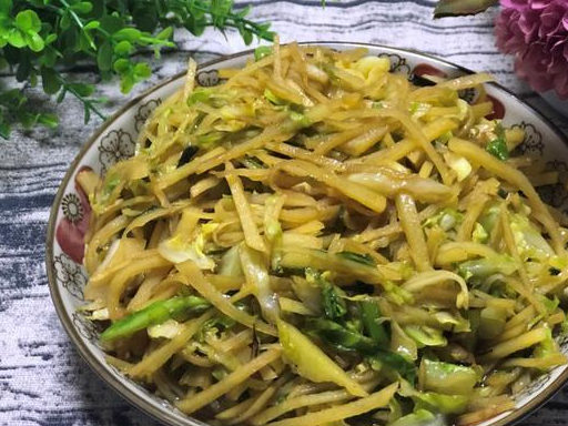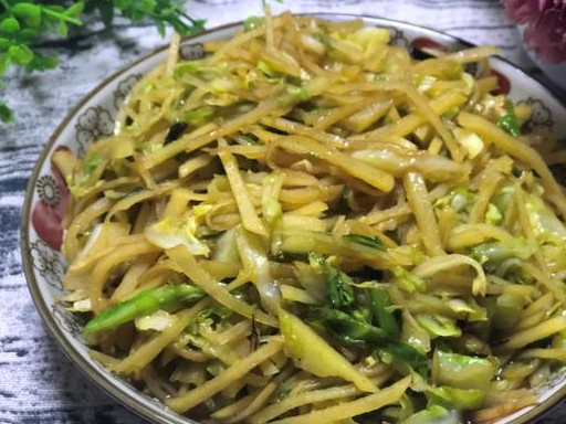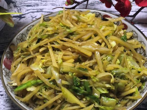 現在天氣一天比一天熱總喜歡吃一些清淡的菜,今天用包菜炒土豆絲,不但色澤好看,而且味道很好。土豆含有豐富的膳食纖維,有資料表示,其含量與蘋果一樣多。因此胃腸對土豆的吸收較慢,食用土豆後,停留在腸道中的時間比米飯長的多,所以更具有飽腹感,同時還能幫助帶走一些油脂和垃圾,具有一定的通便排毒作用。包菜的營養豐富,含有豐富的維生素C、較多的維生素E和維生素B族,以及豐富的花青素甙和纖維素等,包菜含有抗氧化的營養素,防衰老、抗氧化的效果與芒筍、菜花同樣處在較高的水平。