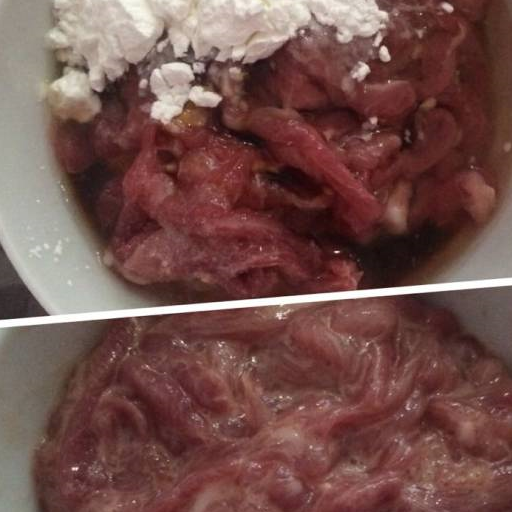 第1步、豬瘦肉切絲加入料酒,少許鹽和少許生抽,加入1勺淀粉再打入1個蛋清抓勻後放入冰箱冷凍5分鐘。這樣炒出的肉滑嫩。