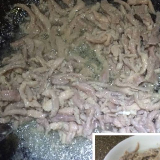 第4步、將鍋燒熱至冒煙,倒入稍多些的油,再倒入肉絲滑散後撈出備用。