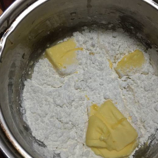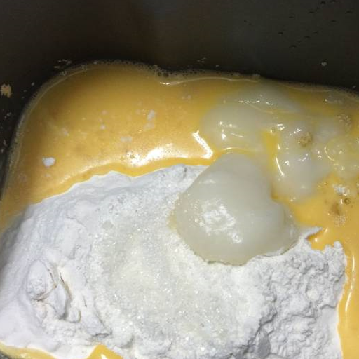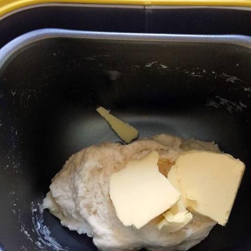 第2步、將主料中所有材料除黃油外,入面包機啟動和面團程序至結束。