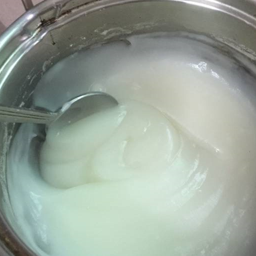 第1步、首先來煮湯種、取一小鍋,加入100克的水,20克高筋面粉拌均,上爐用小火一邊攪拌一邊煮至成面糊離火就是湯種瞭。(煮好的湯種秤出60克出來、剩下的湯種可放冰箱冷藏留下次做面包用)