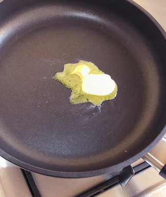 2、講平底鍋預熱,放入黃油至融化,均勻塗滿整個鍋底