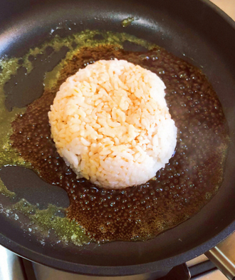 3、把米飯放上(熱的),把調好的調料倒在米飯上