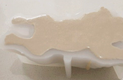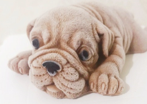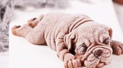 最後把冰箱裡的沙皮狗的模具拿出來,把剛攪拌好的奶油放進去,鋪平,這樣我們的沙皮狗慕斯蛋糕就制作好瞭,放到冰箱裡冰鎮最少是要5個小時,制作好之後脫模就可以食用瞭。