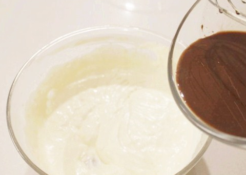 剩下的巧克力在和牛奶攪拌在一起,再把泡好的吉利丁片也放進去,攪拌均勻,淡奶油加糖進行打發,糖的多少按照自己的嗜甜度決定,再把做好的巧克力和打發好的奶油攪拌在一起。