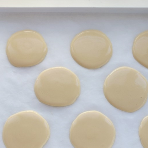 蛋餅烤好後蓋油紙,待蛋餅回溫後再做後續操作,否則易折裂。