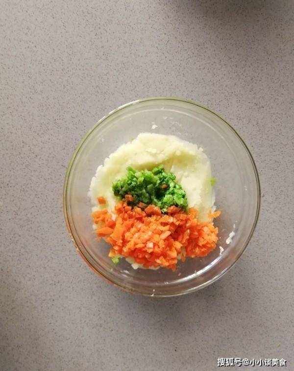 8.在土豆泥中加入西蘭花和胡蘿卜