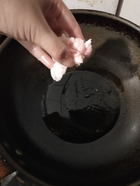 3.鍋中少放點油,先炒肥肉~不介意的可以一起炒