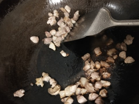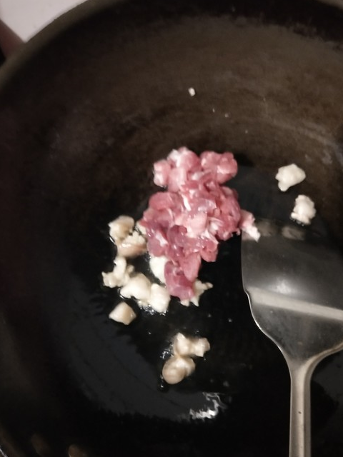 4.肥肉稍微炒一會,放入瘦肉