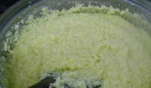 煮小米時最好不要離開廚房,要不時攪拌小米,防止粘鍋糊底,水量可以一次性加足,也可以一邊煮一邊加水,但不能停止攪拌。冷卻後放入冰箱整形,夏天取出可以即食,冬天則需加熱再食用。
